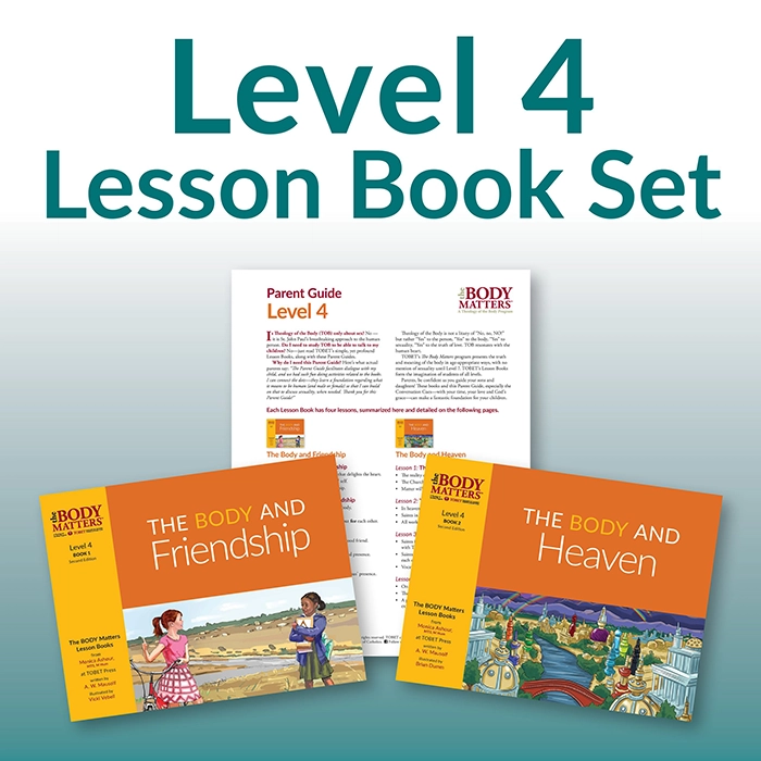The Lesson Book Sets include both Lesson Books and Parent Guides for Levels PreK-8. Especially relevant today, as children are being inundated with false notions of the body, identity, and gender, The Body Matters program offers young people a message of hope and the light of truth by drawing upon the wisdom found in St. John Paul’s Theology of the Body. The Body Matters presents these teachings in an easy-to-understand and age-appropriate way. For more information on The Body Matters, click here. TOBET’s Parent Guides are to be used in conjunction with each of The Body Matters Lesson Books, levels Pre-K–8. Each guide offers parents a basic overview of the content their children will learn through The Body Matters program. The guides also suggest many practical family conversation starters and activities. For parents and other educators who would like to go into more depth regarding The Body Matters Lesson Books, check out TOBET’s robust Educator Guides.