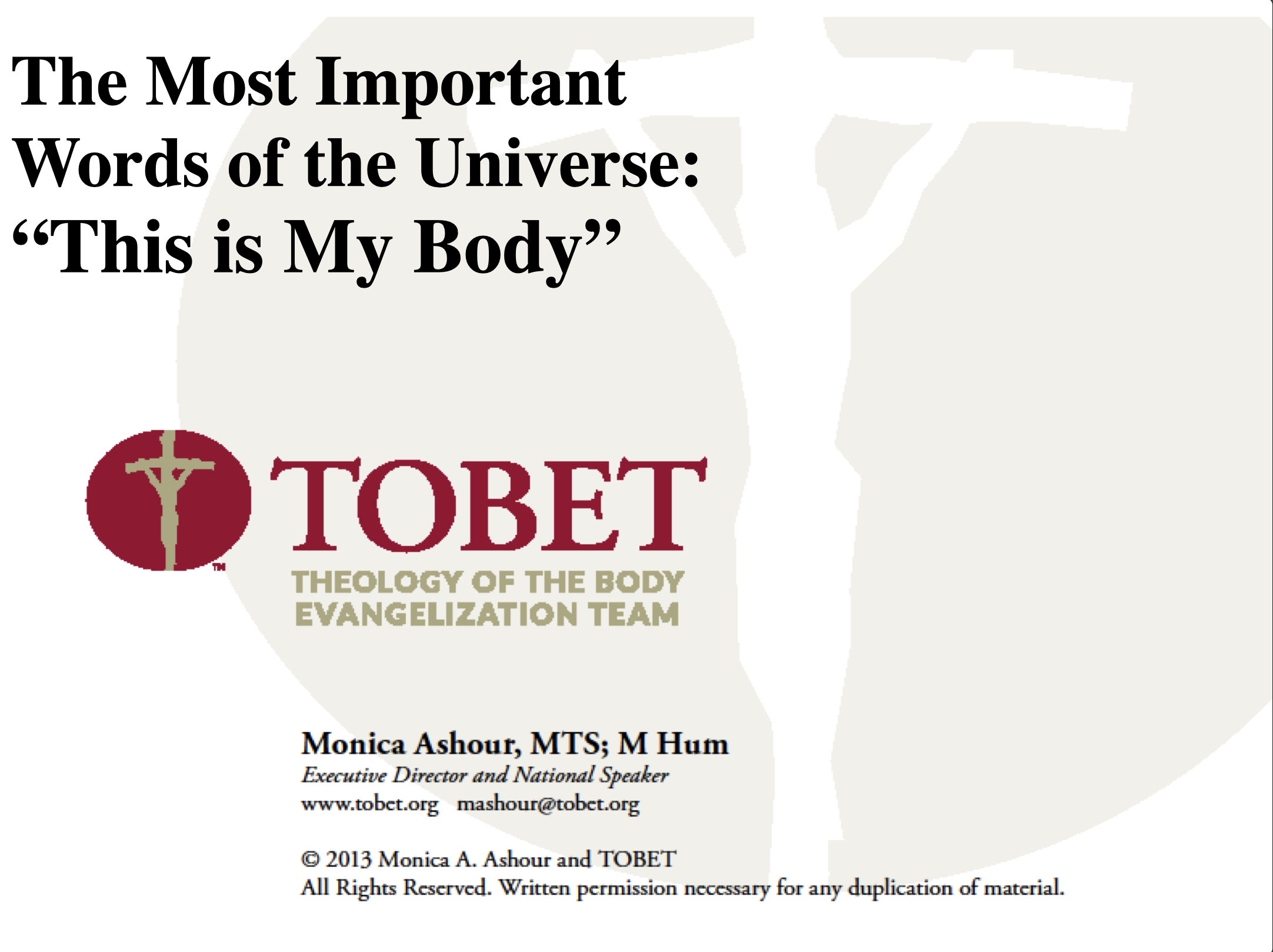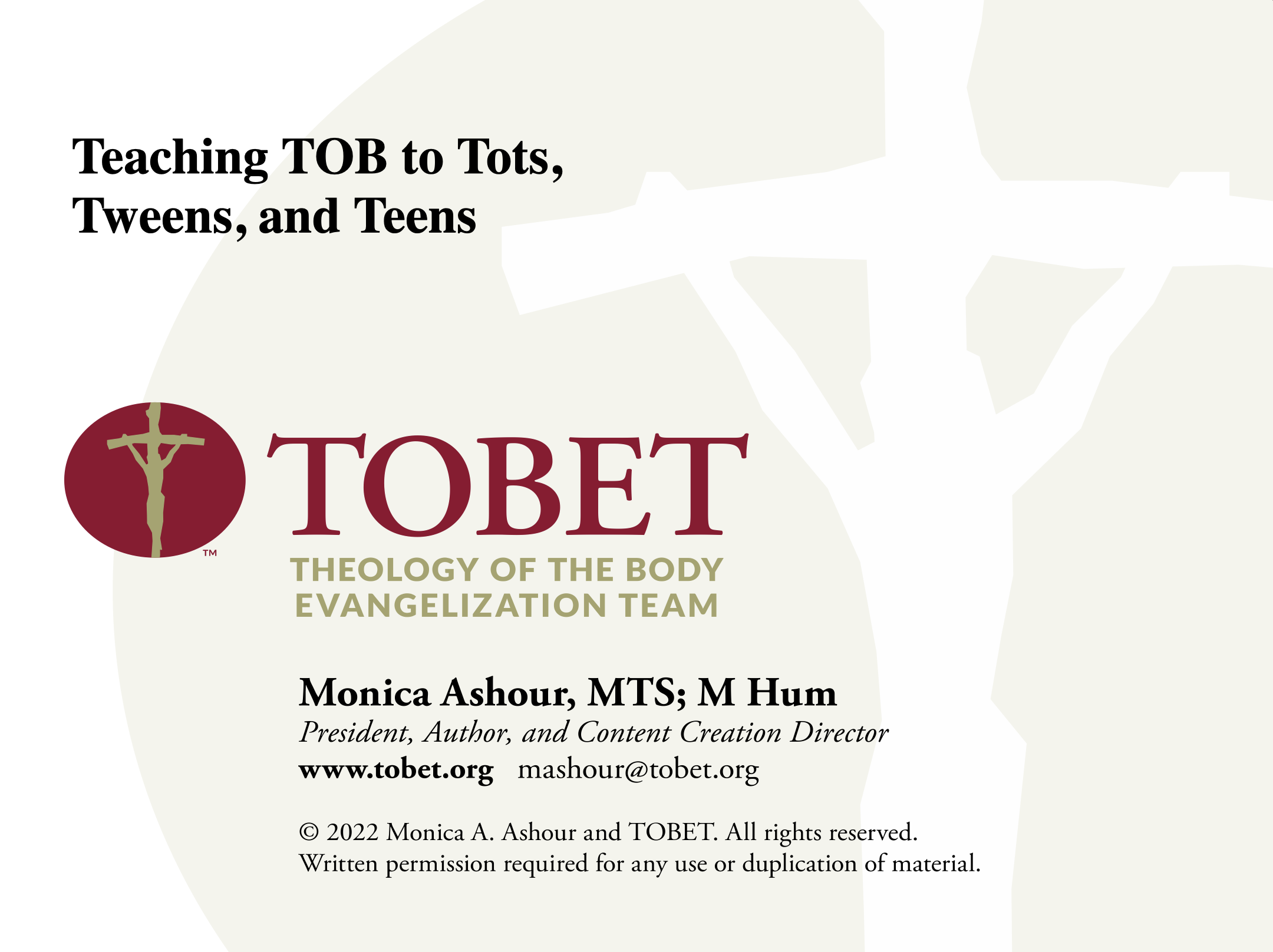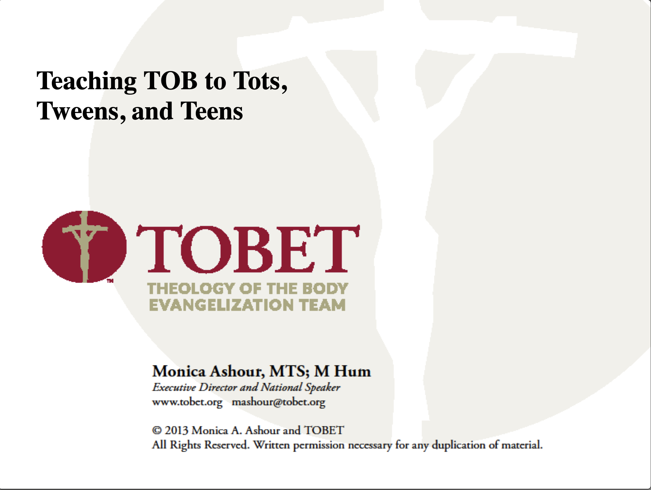 TOBET offers TOB training for parishes, schools and other organizations.