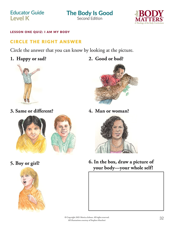 The Educator Guide is the essential teaching resource for The Body Matters program. It provides the educator detailed instructions for teaching each lesson, offers suggested enrichment activities, and includes straight-forward assessments. The Educator Guide empowers the instructor to teach The Body Matters program successfully and does not assume one has any prior familiarity with Theology of the Body. Each Educator Guide includes: